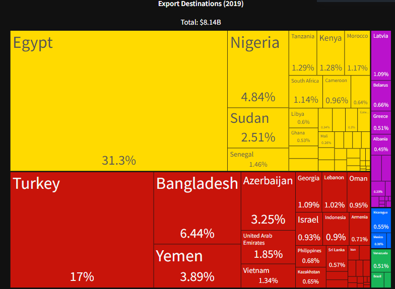 Egypt alone takes home about 31%. Nigeria 5%, Turkey 17%. What have most of these countries have in common? they have a high population, a high proportion of which is poor, and hence spends a higher portion of its meager earnings on food.